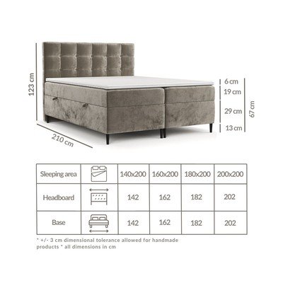 180x200 cmCon contenitoreImbottitoCon materasso incluso/con topper inclusoCon rivestimento in cinigliaColor crema