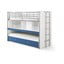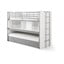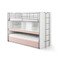 Il design del letto a castello include una rete e consente una disposizione flessibile. La scala può essere montata su entrambi i lati, aumentando la variabilità dell'allestimento. Il letto inferiore, il letto estraibile e la scrivania possono essere estesi a seconda delle necessità, facilitando l'adattamento dello spazio a diverse attività.