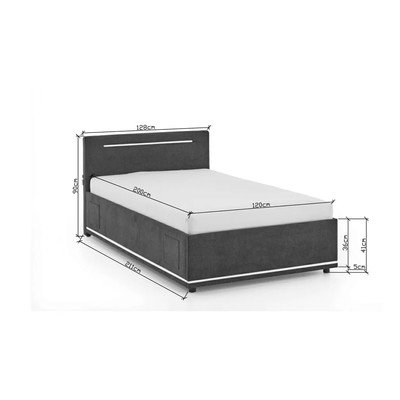 120x200 cm, rete non inclusa, imbottito, con illuminazione/con porta USB, grigio scuro