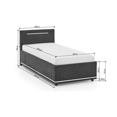 90x200 cm, rete non inclusa, imbottito, con illuminazione/con porta USB, grigio scuro
