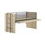 Il letto è dotato di una scrivania estraibile con un'ampia superficie di lavoro, ideale per i compiti o le attività creative. Per la sicurezza del bambino, il letto è dotato di una protezione anticaduta e di una robusta scaletta che può essere fissata sul lato destro e sinistro. Lo spazio sotto il tavolo può essere utilizzato come contenitore per armadietti opzionali.