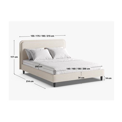 Letto matrimoniale imbottito greige con rete inclusa 140x200 cm Aveline – Micadoni