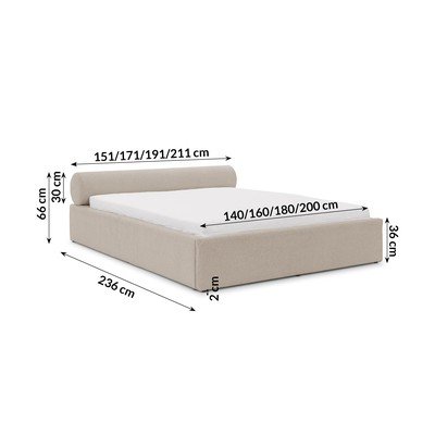Letto matrimoniale imbottito beige con contenitore con rete inclusa 200x200 cm Cille – Ropez