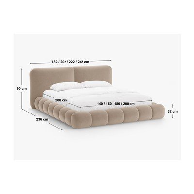 200x200 cm, con contenitore, con rete inclusa, imbottito, con rivestimento in ciniglia, beige