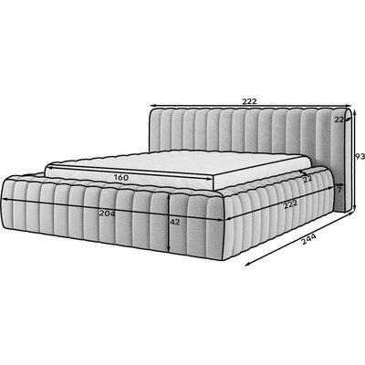 Letto matrimoniale imbottito grigio chiaro con contenitore e rete inclusi 160x200 cm Carilla – ELTAP