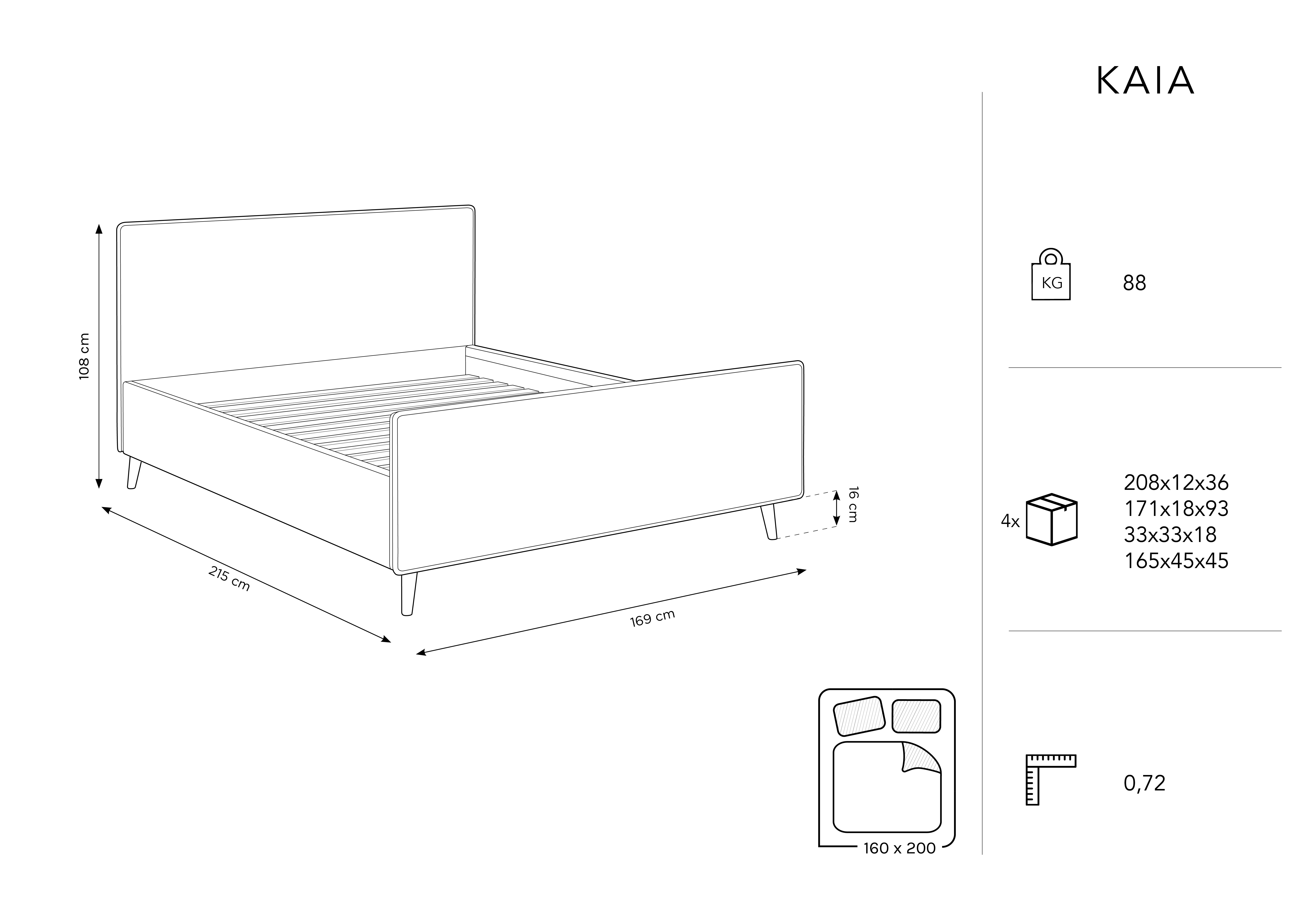 Abbandonatevi alla potenza dell'eleganza del letto Kaia. È decorato con una testata alta e liscia che aggiungerà una certa personalità alla vostra camera da letto. Il design moderno tendente allo stile Glamour nasconde anche elementi classici e, insieme alle gambe in legno di faggio scuro, crea un look dalle linee pulite.