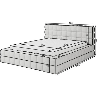 Letto matrimoniale imbottito grigio con contenitore e rete inclusi 180x200 cm Dizzle – ELTAP
