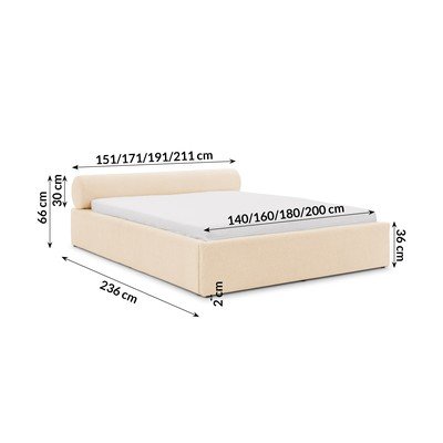 Letto matrimoniale imbottito color crema con contenitore con rete inclusa 140x200 cm Cille – Ropez
