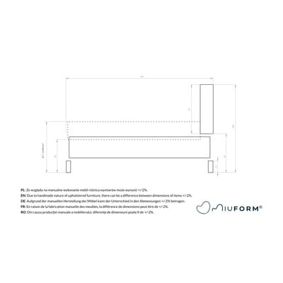 Questo letto di Miuform colpisce per la sua testata intrecciata morbida al tatto con struttura tridimensionale. La struttura è composta da un solido telaio imbottito e da doghe a molle che sostengono in modo affidabile il materasso. Il tutto è completato da strette gambe in metallo che elevano il letto per facilitarne la manutenzione.