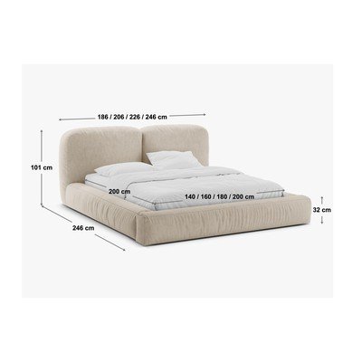 Letto matrimoniale imbottito beige con contenitore con rete inclusa 200x200 cm Martina – Micadoni
