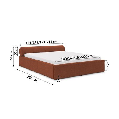 Letto matrimoniale imbottito color terracotta con contenitore con rete inclusa 180x200 cm Cille – Ropez