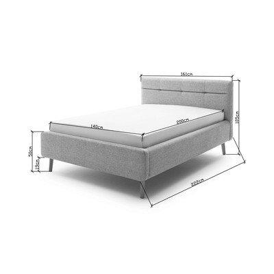 Letto matrimoniale Lotte140x200 cm, con contenitore, con rete inclusa, imbottito, grigio