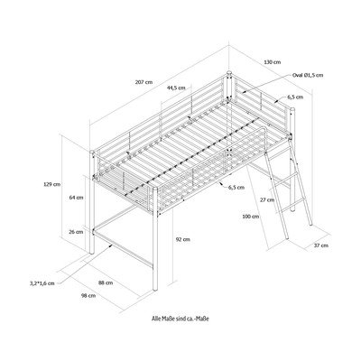 Letto bianco rialzato per bambini 90x200 cm Jodie - Støraa