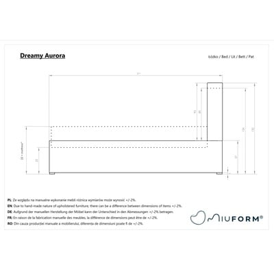 La testiera imbottita di questo letto Dreamy Aurora è molto interessante con il suo stile di design unico. Il materiale in velluto, facile da pulire, sottolinea il comfort e la grandezza del design. L'altezza della morbida testiera imbottita consente di riposare comodamente anche in posizione eretta. Sotto la struttura si trova un ampio vano portaoggetti facilmente accessibile.