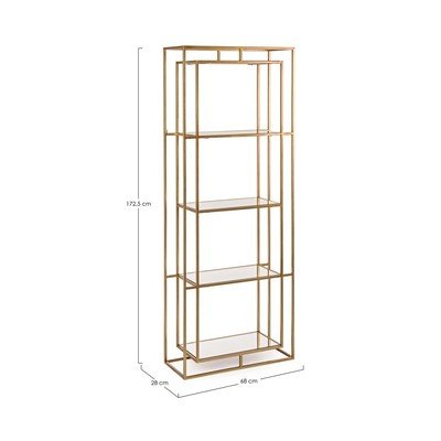 Libreria ElenorIn acciaio, trattamento della superficie: verniciatura a polvere, dorata, larghezza totale 68 cm, altezza totale 172,5 cm, profondità totale 28 cm