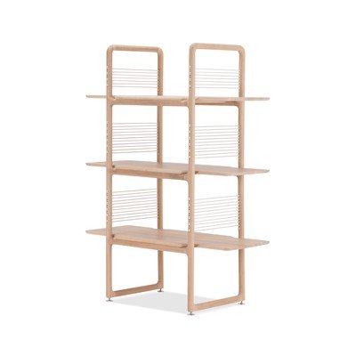 Scaffale MuseIn rovere massiccio, trattamento della superficie: verniciatura a olio, con trama opaca, di colore naturale, larghezza totale 100 cm, altezza totale 140 cm, profondità totale 45 cm