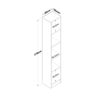 Libreria AllenCon effetto noce, in MDF, trattamento della superficie: melamina, di colore naturale, larghezza totale 30 cm, altezza totale 170 cm, profondità totale 25 cm