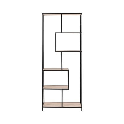 Libreria SeafordCon effetto rovere, in MDF, trattamento della superficie: carta/trattamento della superficie: verniciatura a polvere, nera/di colore naturale, larghezza totale 77 cm, altezza totale 185 cm, profondità totale 35 cm