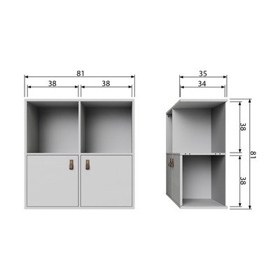 Libreria componibile VtIn pino massiccio, trattamento della superficie: laccatura, con trama opaca, grigia, larghezza totale 81 cm, altezza totale 81 cm, profondità totale 35 cm