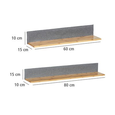 Mensole in set Bahari2 pz, in bambù, in MDF, trattamento della superficie: laccatura, con trama opaca, grigie/di colore naturale, larghezza totale 80 cm, altezza totale 15 cm, profondità totale 10 cm
