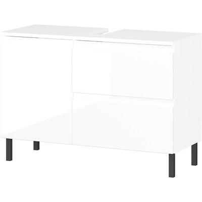 Mobile da lavabo SalinasIn truciolato, trattamento della superficie: melamina, con trama lucida, bianco, larghezza totale 80 cm, altezza totale 56 cm, profondità totale 34 cm