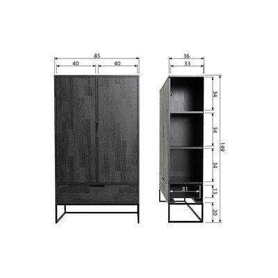 In frassino massiccioTrattamento della superficie: verniciatura colorata/trattamento della superficie: spazzolaturaCon trama opacaNeroLarghezza totale 85 cmAltezza totale 149 cmProfondità totale 33 cm