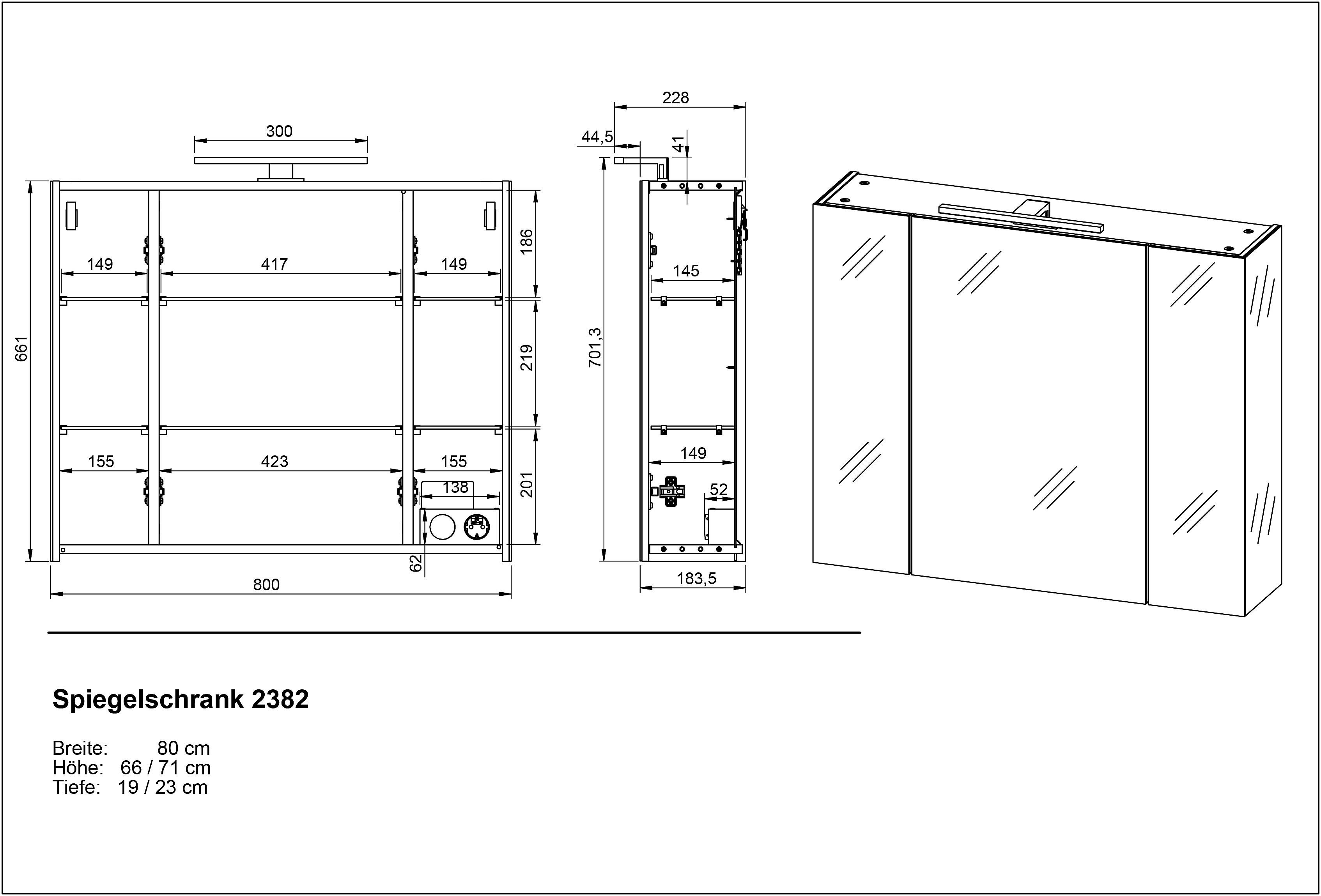 Da appendere/con specchio/con luceIn truciolatoTrattamento della superficie: melaminaGrigioLarghezza totale 80 cmAltezza totale 71 cmProfondità totale 13 cm