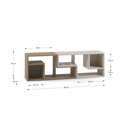 AngolareCon effetto rovereIn truciolatoTrattamento della superficie: melaminaBianco/di colore naturaleLarghezza totale 145 cmAltezza totale 45 cmProfondità totale 35 cm
