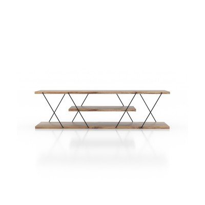 Mobile TV CanazCon effetto noce, in MDF, trattamento della superficie: melamina, di colore naturale, larghezza totale 120 cm, altezza totale 33 cm, profondità totale 30 cm