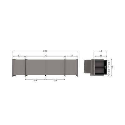 Con effetto frassinoIn compensatoTrattamento della superficie: impiallacciaturaGrigioLarghezza totale 200 cmAltezza totale 53 cmProfondità totale 44 cm
