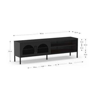 Mobile TV DioraIn metallo, trattamento della superficie: verniciatura a polvere, nero, larghezza totale 160 cm, altezza totale 50 cm, profondità totale 35 cm