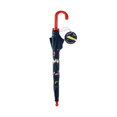 L'ombrello Space Age Kids del brand Rex London è un accessorio leggero e pratico per i piccoli avventurieri. La sua superficie è decorata con motivi di razzi, pianeti e stelle che trasporteranno i bambini nello spazio.