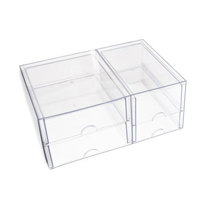 L'organizzatore è diviso in due sezioni affiancate. Ciascuna sezione è dotata di due cassetti estraibili con un pratico taglio a mezza luna per facilitarne l'apertura.