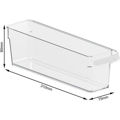 Organizzatore in plexiglas per tutta la profondità del frigorifero. Dimensioni ridotte per riporre oggetti stretti e piccoli. Non so però quanto sia r...