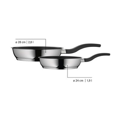 Le padelle Devil del brand WMF sono un pratico complemento per ogni cucina. Questo set include due pezzi di diverse dimensioni, con diametri di 24 cm e 28 cm.