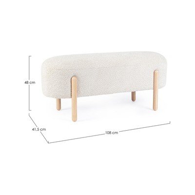 Con rivestimento in bouclé, in imbottito, color crema, larghezza totale 108 cm, profondità totale 41,5 cm, altezza totale 48 cm
