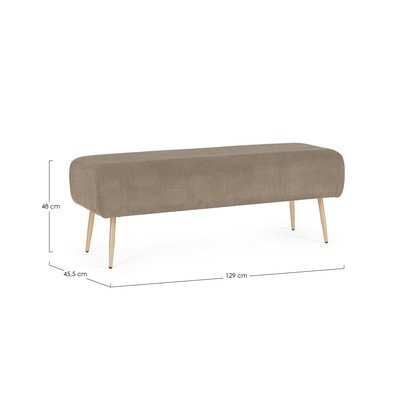 In imbottitoGrigio tortoraLarghezza totale 129 cmProfondità totale 45,5 cmAltezza totale 48 cm
