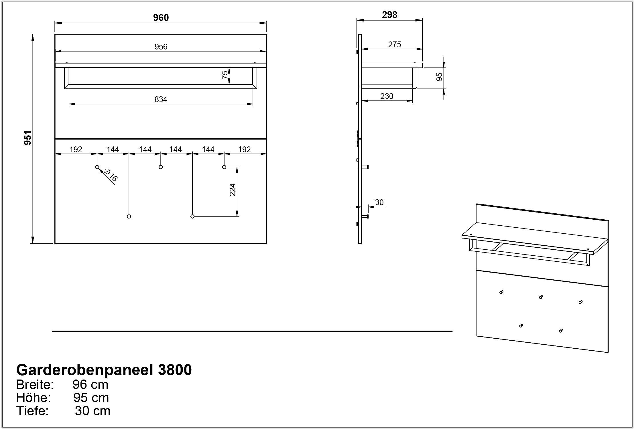 Pannello appendiabiti BastiaIn truciolato, trattamento della superficie: melamina, grigio, larghezza totale 96 cm, altezza totale 96 cm, profondità totale 30 cm
