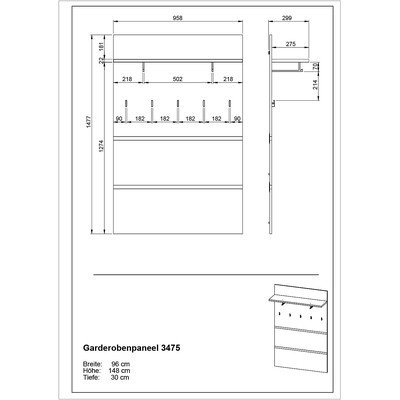 Pannello appendiabiti LissabonCon effetto faggio, in truciolato, trattamento della superficie: laminazione, di colore naturale, larghezza totale 96 cm, altezza totale 147 cm, profondità totale 30 cm