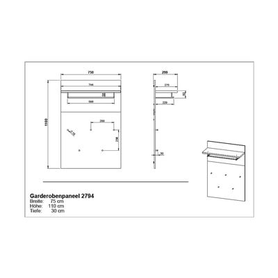 Pannello appendiabiti FremontCon effetto rovere, in truciolato, trattamento della superficie: melamina, di colore naturale, larghezza totale 75 cm, altezza totale 110 cm, profondità totale 30 cm