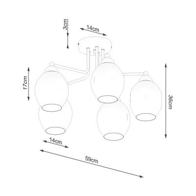 Con paralume in vetro, in metallo, nera, 59x59 cm, altezza totale 36 cm