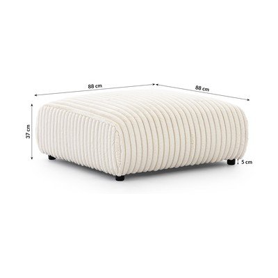 Con rivestimento in velluto a coste, color crema, larghezza totale 88 cm, profondità totale 88 cm, altezza totale 39 cm