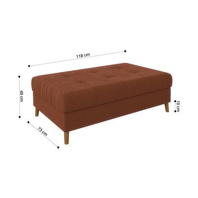 Con rivestimento in velluto a coste, color mattone, larghezza totale 118 cm, profondità totale 73 cm, altezza totale 40 cm