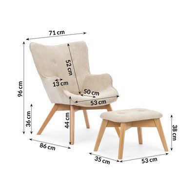 Poltrona con poggiapiedi beige con rivestimento in velluto a coste Niko – Ropez