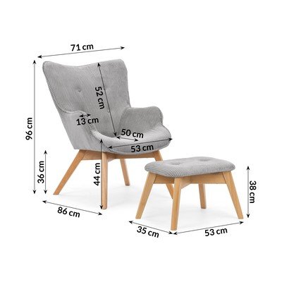 Con poggiapiedi, con rivestimento in velluto a coste, grigia