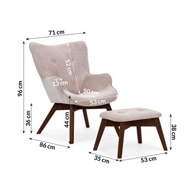 Poltrona con poggiapiedi rosa chiaro con rivestimento in velluto a coste Niko – Ropez