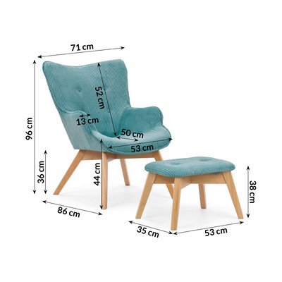 Con poggiapiedi, con rivestimento in velluto a coste, turchese