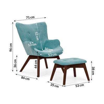 Poltrona con poggiapiedi turchese con rivestimento in velluto a coste Niko – Ropez
