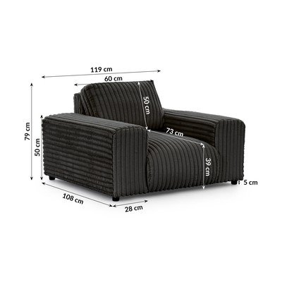 Poltrona grigio scuro con rivestimento in velluto a coste Justin – Ropez