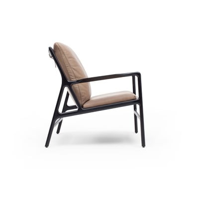 Poltrona DedoCon trama/in legno, con rivestimento in pelle, nera/beige